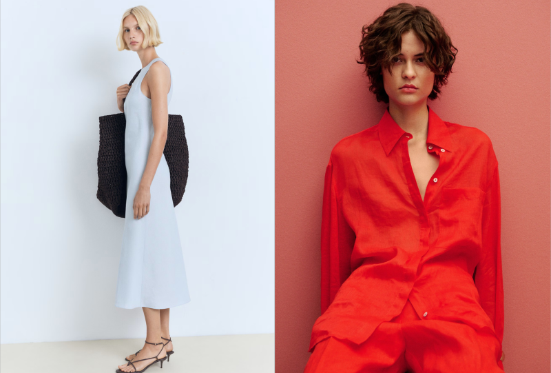 Бренд активно использует органический хлопок, лен, переработанный полиэстер и вискозу из экологичных источников. На сайте Mango для поиска таких моделей выбирайте в фильтрах раздел «Materialien» → «Baumwolle (bio)» или ищите товары с пометкой Committed. Льняную коллекцию можно посмотреть по ссылке.
